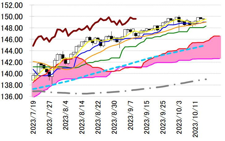 本日の東京外国為替市場のドル円は、緊迫の度合いを増しつつある中東情勢や米下院議長選出に関する ヘッドラインに警戒しつつ、日米 10 年債利回りを睨みながらの展開が予想される。