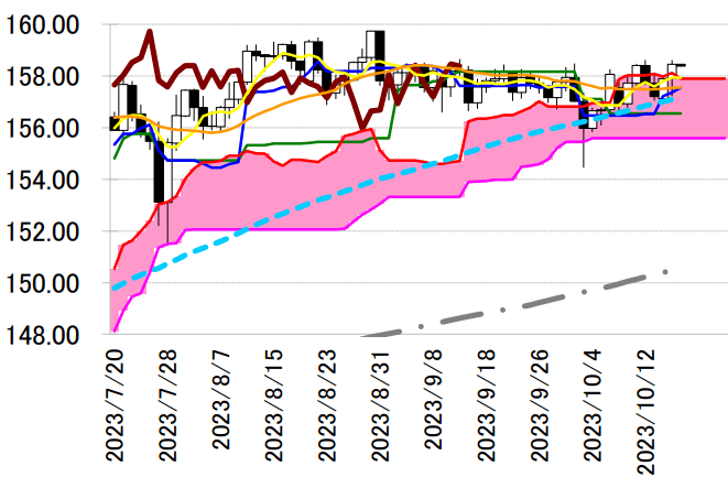サポート 1 157.54(日足一目均衡表・転換線)