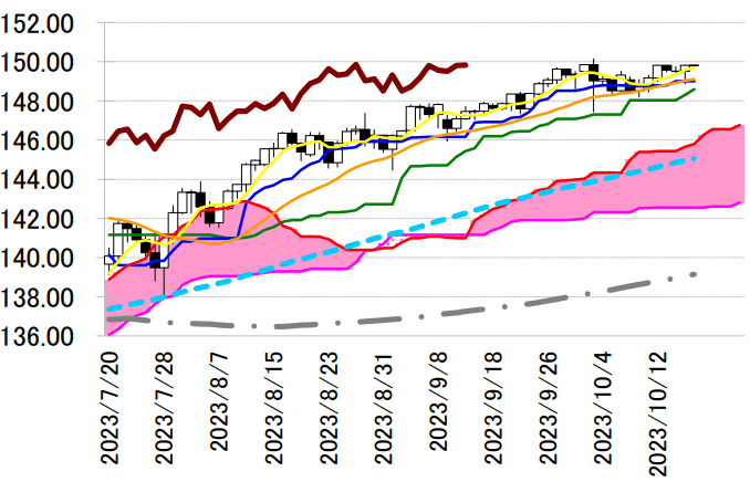 ドル円が 150 円台に上昇する局面では、鈴木財務相「為替は場合によって適切な対応が求められる」や 神田財務官「為替介入で過度の変動に対抗する」などの口先での円安牽制から、ドル売り・円買い介入へ 踏み切る可能性に警戒しておきたい。