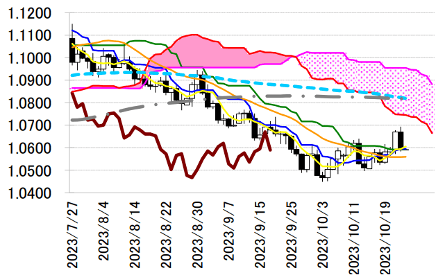 本日は、転換線 1.0595 ドルを念頭に置き、24 日高値を抵