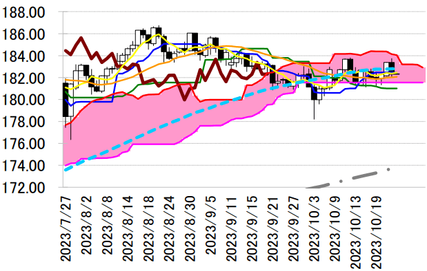 本日は、転換線 182.43 円を念頭に置き、24 日の高値を抵
