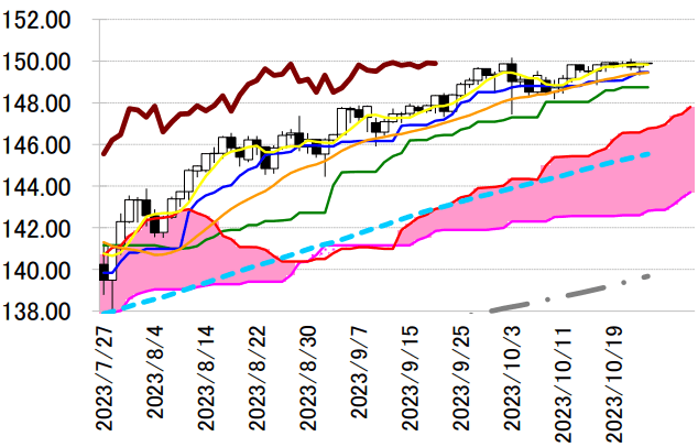 本日は、転換線 149.48 円を念頭に置き、基準線を支持に