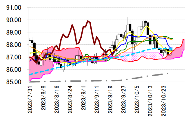 サポート 1 86.84(日足一目均衡表・雲の下限)