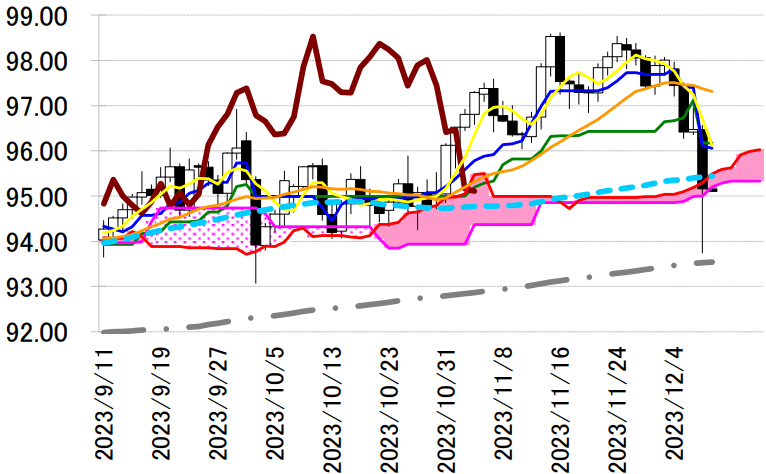 場の強弱を判断する上の分岐点である同線付近から 95 円近