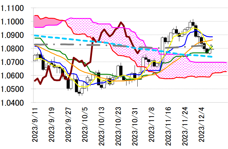 一目・転換線 1.0886 ドルの抵抗も位置する 1.08 ドル台では動きが重くなりそう。