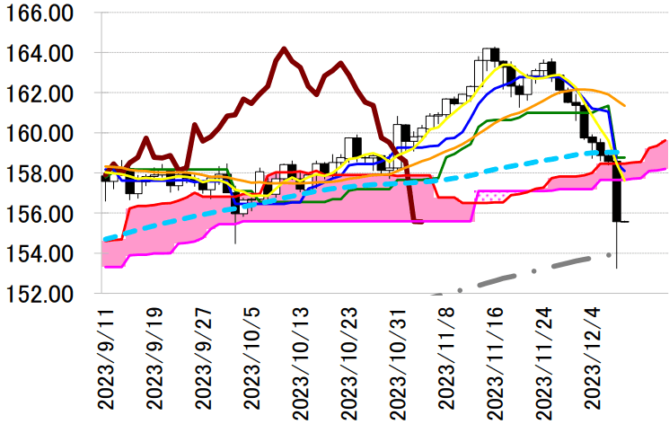 日移動平均線を下抜ける場面もあった、反発して 155 円半ば