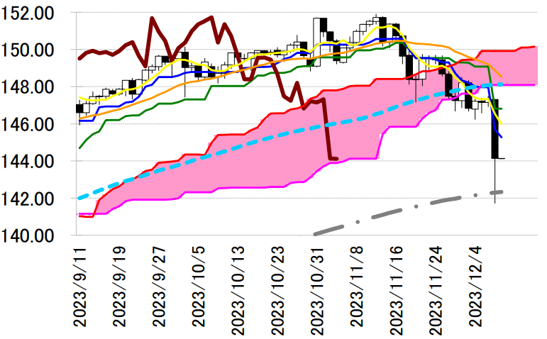 円まで大幅安となった。その後は急落の反動で 144 円台へ大きめに戻している。