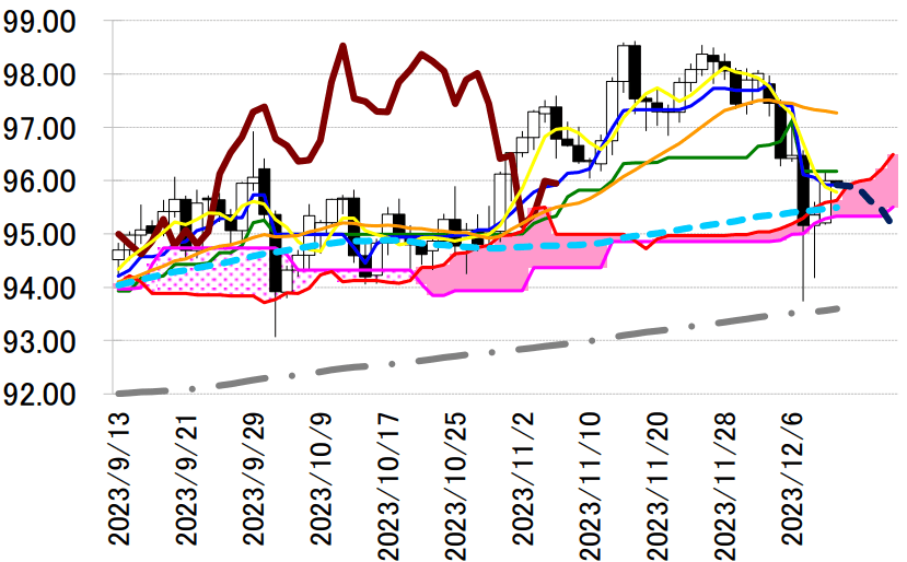 サポート 1 95.33(日足一目均衡表・雲の下限)