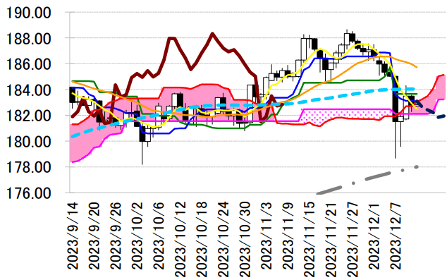 雲の上限を下回って推移。現水準 183.10 円から雲の中へ突