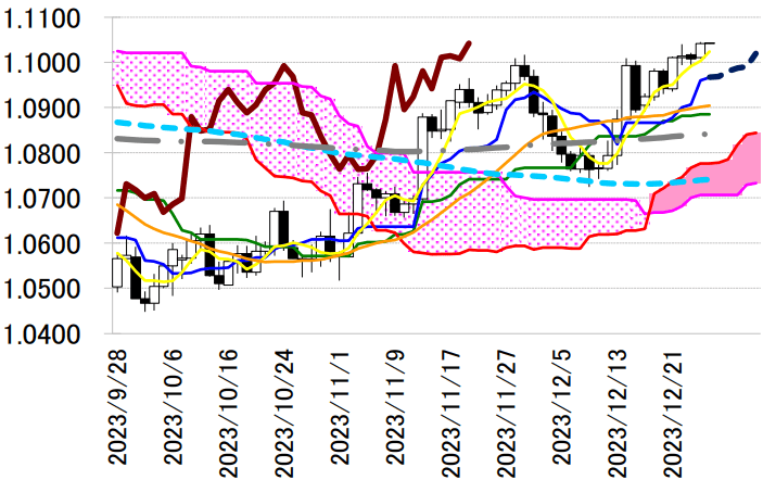 均衡表・転換線 1.0967 ドルが支えとなりそうな構図は変わらず。じり高の流れが続くとみる。