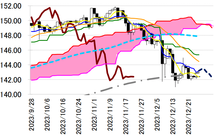 レジスタンス 1 143.05(12/19-22 下落幅の 38.2%戻し)