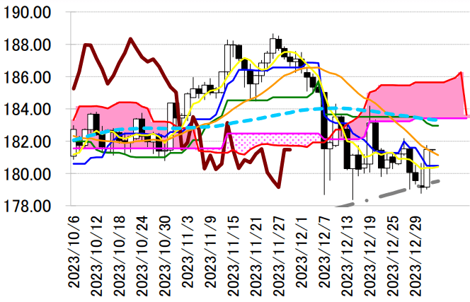 レジスタンス 1 182.96(日足一目均衡表・基準線)