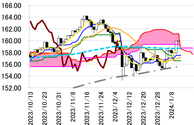 サポート 1 159.38(日足一目均衡表・雲の下限)