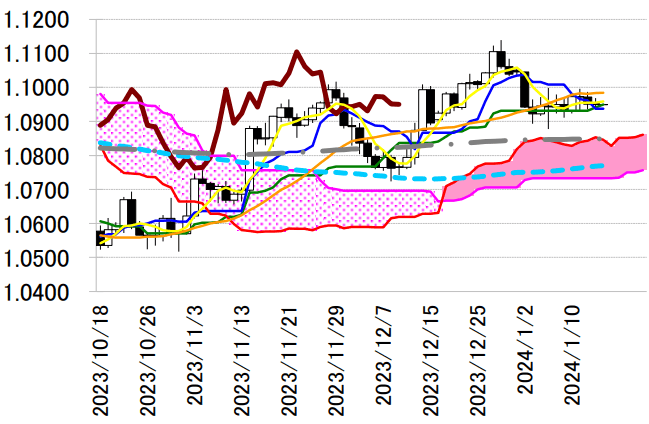本日は 1.0950 ドルの基準線、1.0938 ドルの転換線を念頭