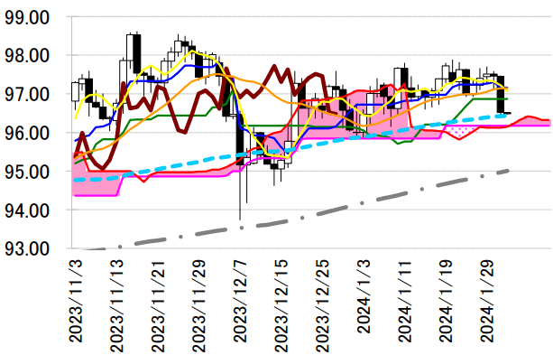 レジスタンス 1 97.16(日足一目均衡表・転換線)