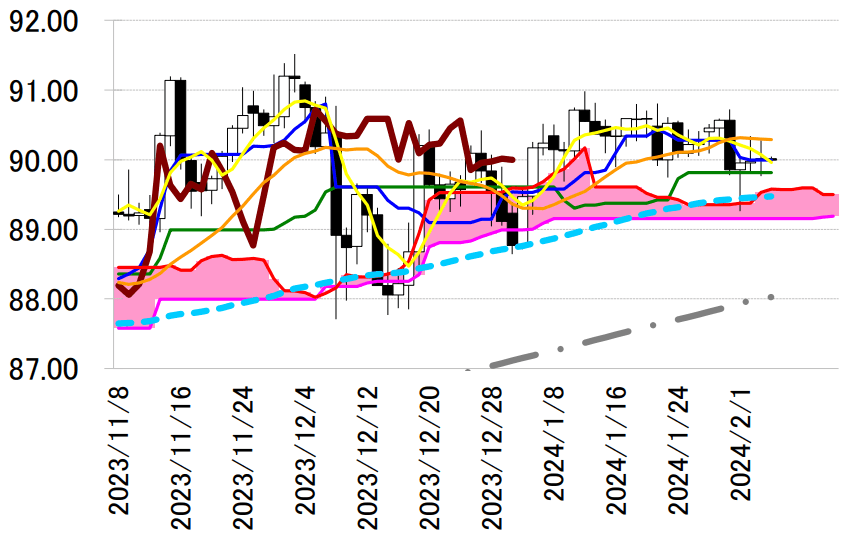 サポート 1 89.15(日足一目均衡表・雲の下限)