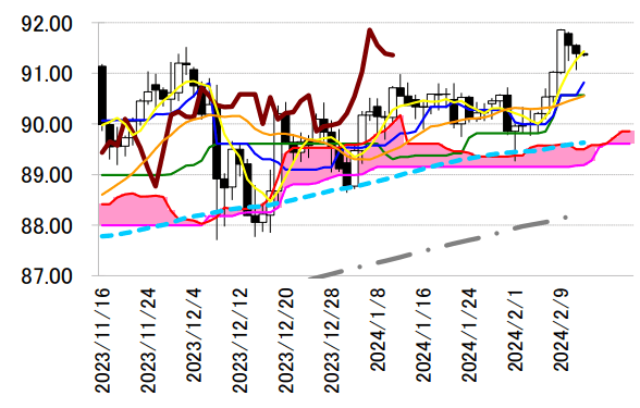 レジスタンス 1 91.87(2/9 高値=年初来高値)