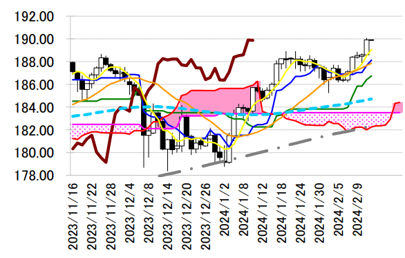 サポート 1 189.26(2/13 レンジ半値水準)