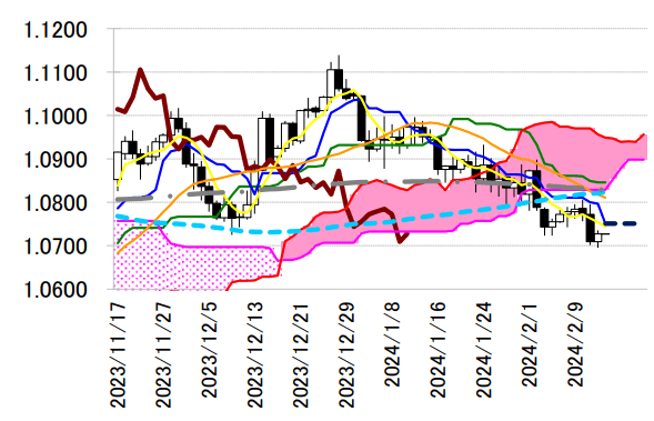 ただ、デギンドス欧州中央銀行(ECB)副総裁がECBの早期利下げに慎重な姿勢を示すと買い戻しが優 勢に。米長期金利の指標となる米10年債利回りが4.24%台まで低下したこともユーロ買い・ドル売りを 促し、2時前に一時1.0735ドルと日通し高値を付けた。