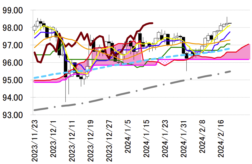 サポート 1 97.75(日足一目均衡表・転換線)