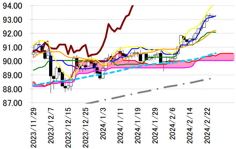 サポート 1 92.40(2/21 安値)