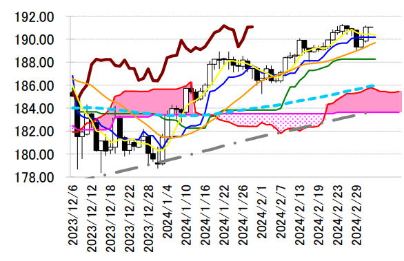 本日は転換線 150.03 円を念頭に置き、3 月 4 日の安値を支