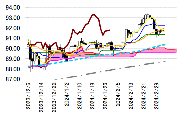 レジスタンス 1 92.25(日足一目均衡表・転換線)