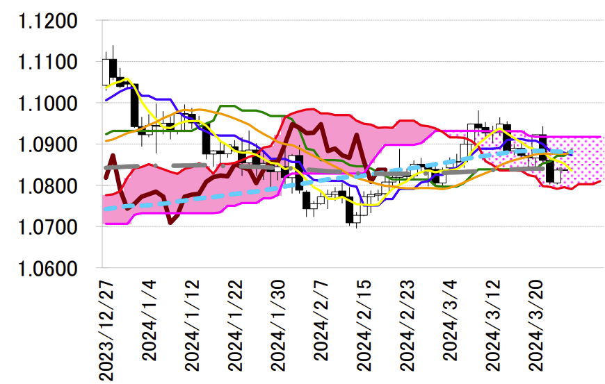 る 1.08 ドル後半(一目・基準線 1.0872 ドル、同転換線 1.0879