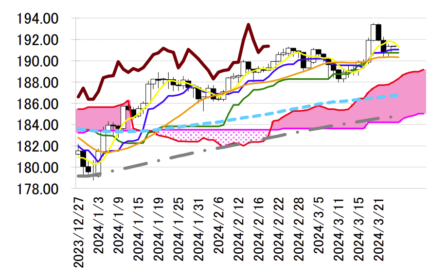 った。買い戻しが強まると 191 円付近の日足一目・転換線も