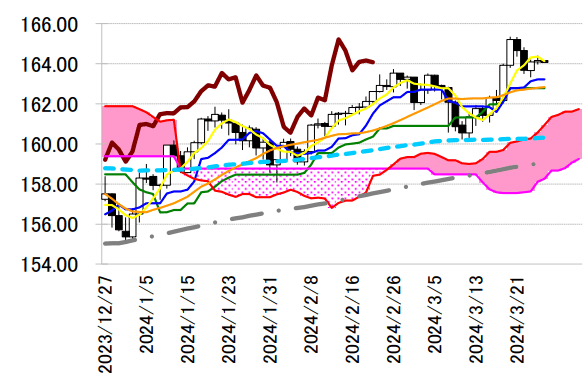 で明日以降は 163.60 円台まで上昇見込み。同線の方向性に