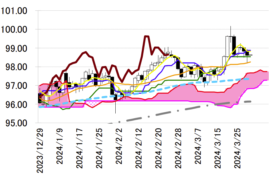 98 円台には、日足一目・転換線が後半、基準線が半ばに位