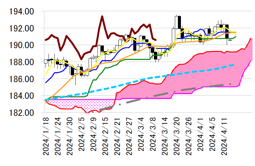 本日は転換線 191.15 円を念頭に置き、2 日安値を支持に押