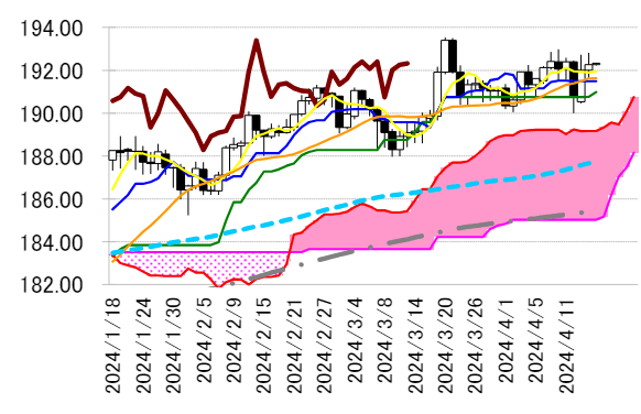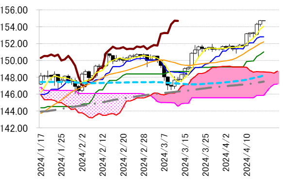本日からワシントンでG20財務大臣・中央銀行総裁会議が開催され、合わせて日米韓財務相会談も予定 されており、円買い介入の司令塔である鈴木財務相と神田財務官が不在となる。しかしながら、155円が 本邦通貨当局の防衛ラインならば、円買い介入が断行される可能性があるため、警戒しておきたい。