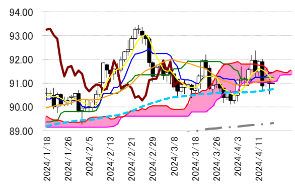 レジスタンス 1 91.45(日足一目均衡表・転換線)