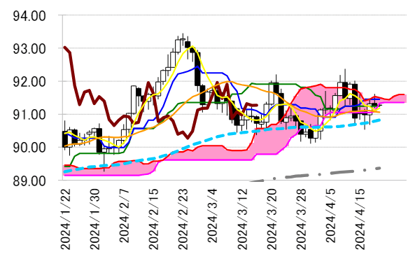本日は転換線 91.45 円を念頭に置き、上抜けた場合は 10