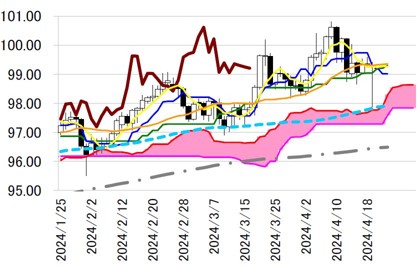 サポート 1 97.78(4/19 安値)