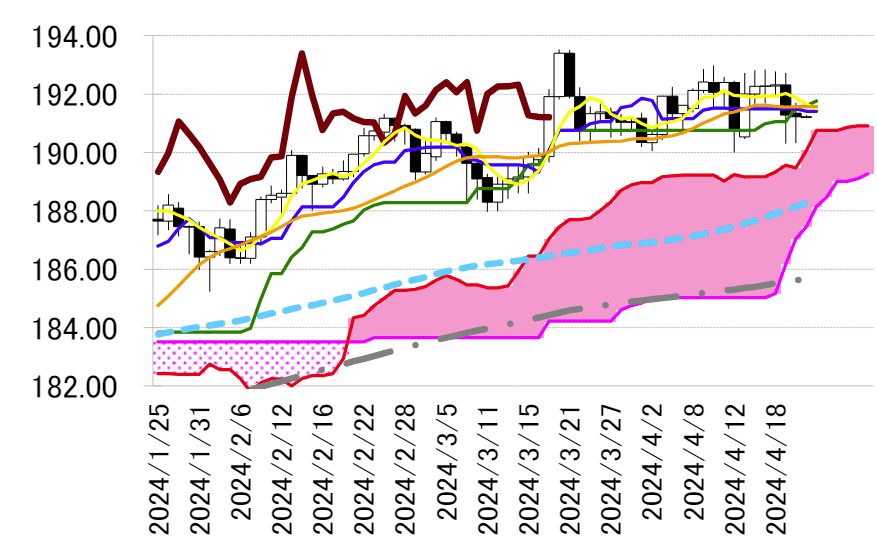 本日は転換線 191.42 円を念頭に置き、17 日の高値を抵抗