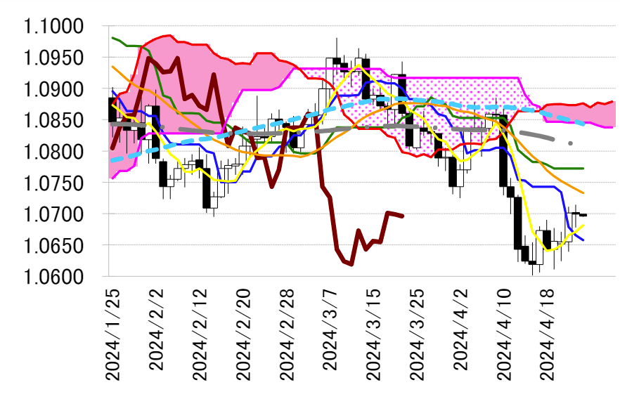 本日は下落中の転換線 1.0658 ドルを念頭に置き、基準線