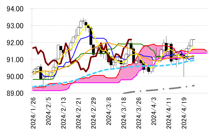 サポート 1 91.07(日足一目均衡表・転換線)