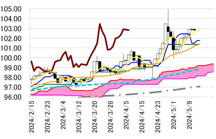 サポート 1 102.05(5/9 安値)