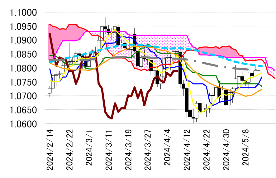 レジスタンス 1 1.0838(日足一目均衡表・雲の上限)