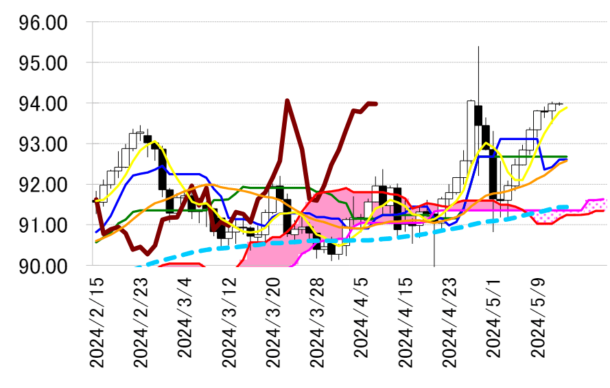 て意識される。上サイド、94 円台は 4 月 29 日のヒゲ部分。
