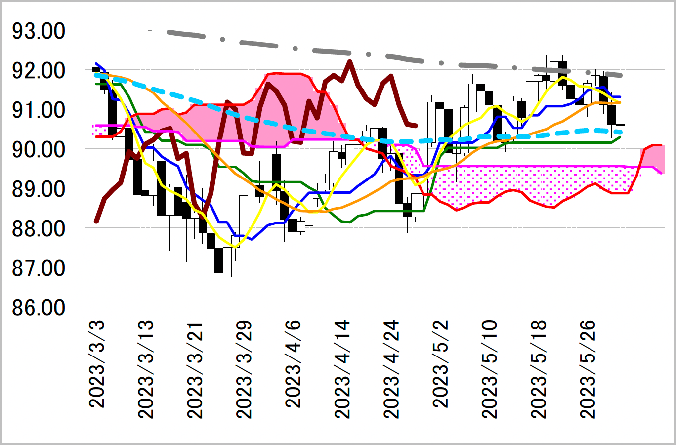 サポート1 89.55(日足一目均衡表・雲の上限)