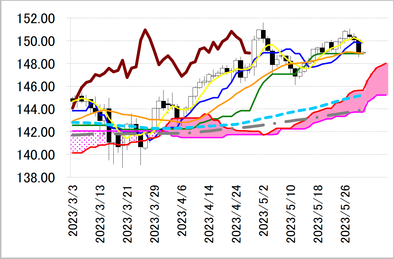 レジスタンス1 149.83(日足一目均衡表・転換線)