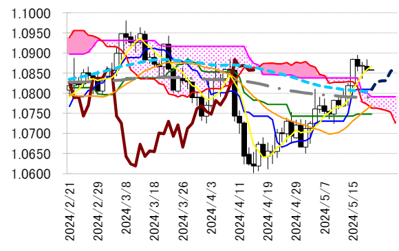 表・転換線 1.0810 ドル前後や一目・雲の上限 1.0791 ドルあ
