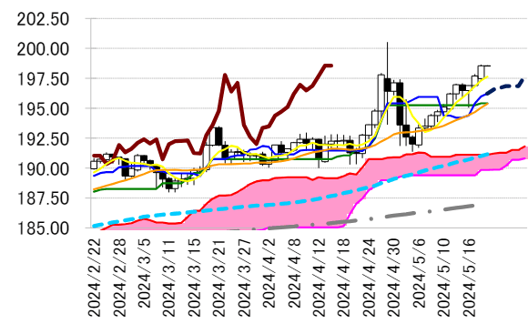あっても本日 197.64 円前後に位置する 5 日移動平均線付近