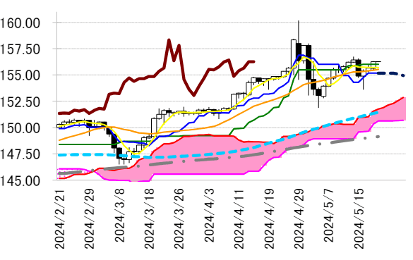 円台を回復した。NY 終値も 156.26 円と、一目均衡表・基準