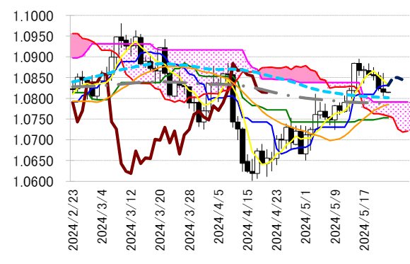 1.0815 ドルと、一目均衡表・転換線を上回って引けることが