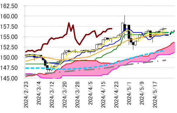 基準線 156.02 円は上回っている。
