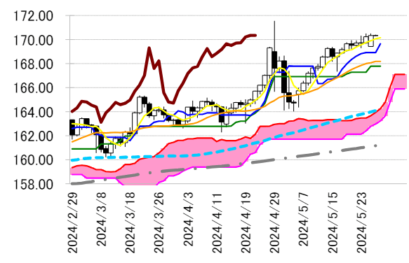 サポート 1 168.92(日足一目均衡表・転換線)